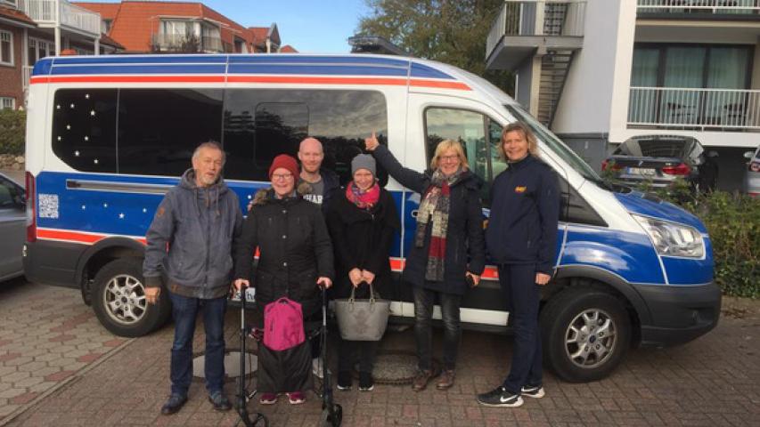 Nach regenreichen Tagen meinte es Petrus mal wieder gut mit uns. Im Elmshorner Johannis Hospiz wurden unsere Wunscherfüller Ute Uhrbrook und Helmut Hollstein schon freudig von der Familie W. erwartet. Die letzten Sachen wurden gepackt, und schon ging es los, musste doch ein Zeitplan eingehalten werden, denn Frau W. hatte sich mit einer Freundin der Familie am Strand verabredet. Nach einem kurzen Telefonat klappte auch alles. Die 63-Jährige erfreute sich im Kreis ihrer Lieben am schönen Wetter und wollte möglichst dicht ans Wasser, auch wenn die Füße dabei nass würden. Ihr Rollator war eine große Hilfe, so dass sie aus eigener Kraft dorthin gelangen konnte.
